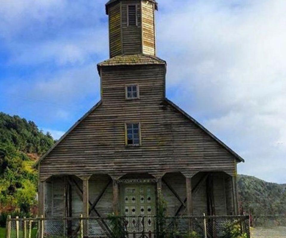 La Iglesia de Detif. La bóveda de su nave central es de medio punto, al igual que los arcos y tiene pilares de madera de coigüe de una pieza, en forma de columna. Llama la atención el emplazamiento de esta pequeña iglesia por ser remate final de la isla con un dominio general del paisaje circundante.