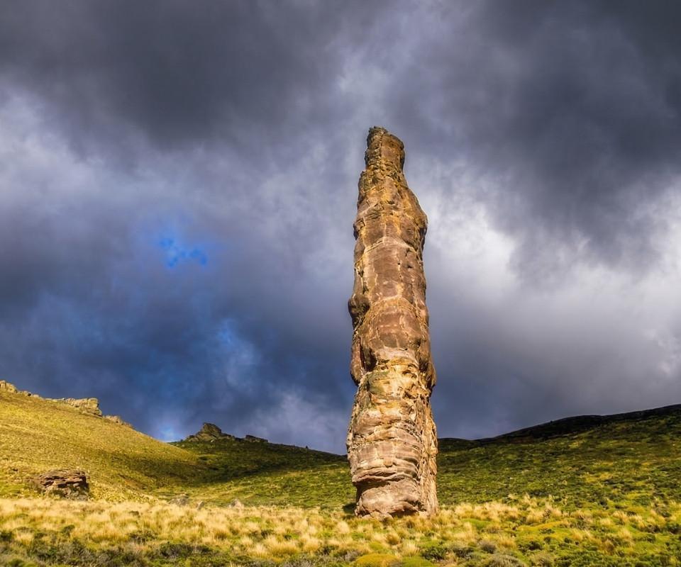 La piedra, solitaria en medio de una pampa, desde lejos va mostrándose creciente en el avanzar hacia ella. Sólo rodeada por coirones, la piedra ha sido pulida por la erosión del viento durante los años y alcanza una altura de alrededor de 40 metros