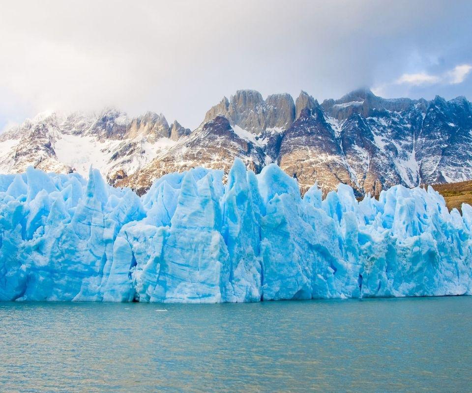 El Glaciar Grey está ubicado en la parte occidental del Parque Nacional Torres del Paine, es parte de los Campos de Hielo Sur. Es una masa de hielo de 6 kilómetros de ancho. El glaciar presenta una coloración azulada, algunas partes del glaciar presentan un color gris, actualmente el glaciar está en retroceso. Se estima que está en retroceso debido al aumento de las temperaturas debido al cambio climático.