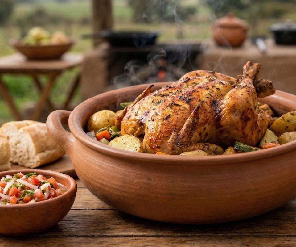 - Reseña: Una técnica culinaria ancestral que preserva todos los jugos de la carne. El pollo se envuelve en papel y luego en una capa de barro antes de ir al horno, resultando en una carne que se deshace al tocarla.